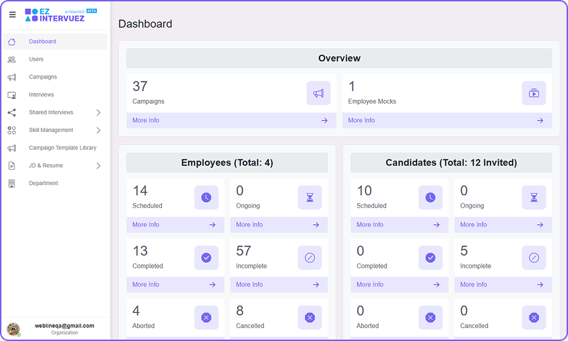 EzIntervuez offers organizations a technologically advanced platform to streamline their process of hiring employees. From sourcing and assessing candidates with verified skills to conducting AI-powered interviews and gaining insightful analytics, we empower companies to efficiently identify and recruit top technical and non-technical talent.
